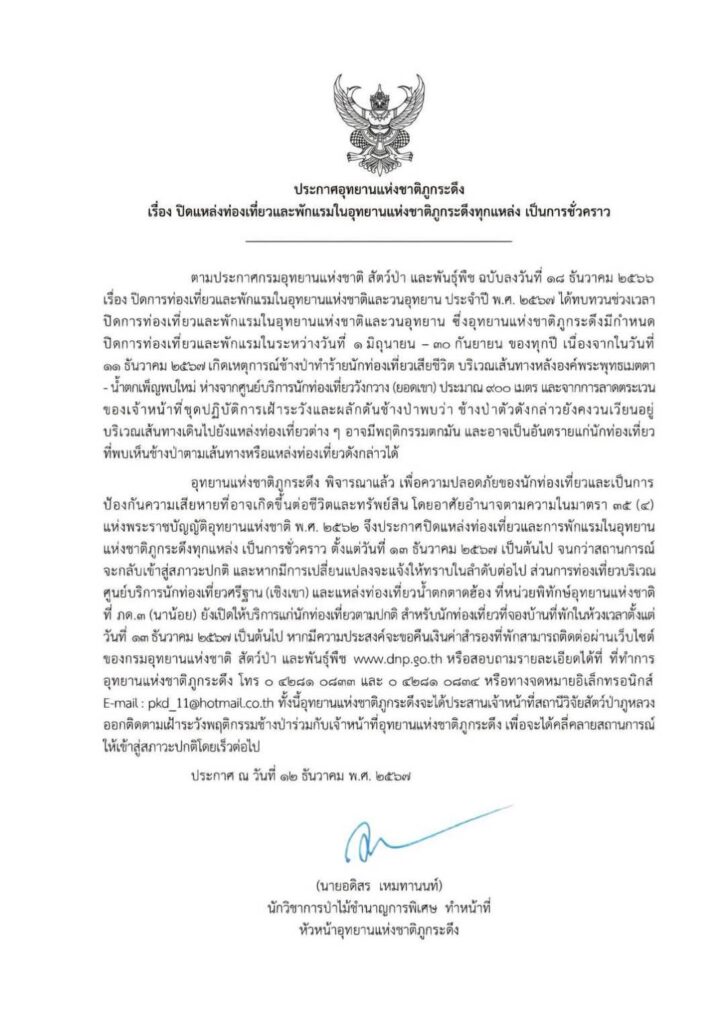 A tragic incident occurred when a tourist was fatally attacked by a wild elephant inside Phu Kradueng National Park. This has led the park to announce an indefinite temporary closure to ensure the safety of other visitors.