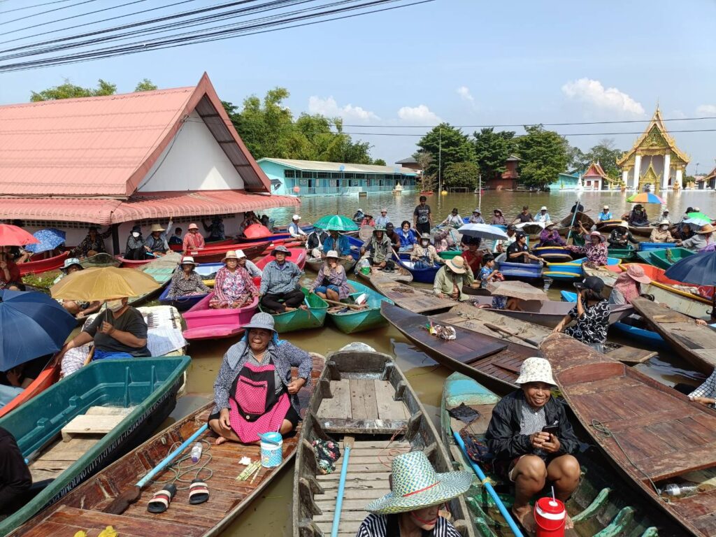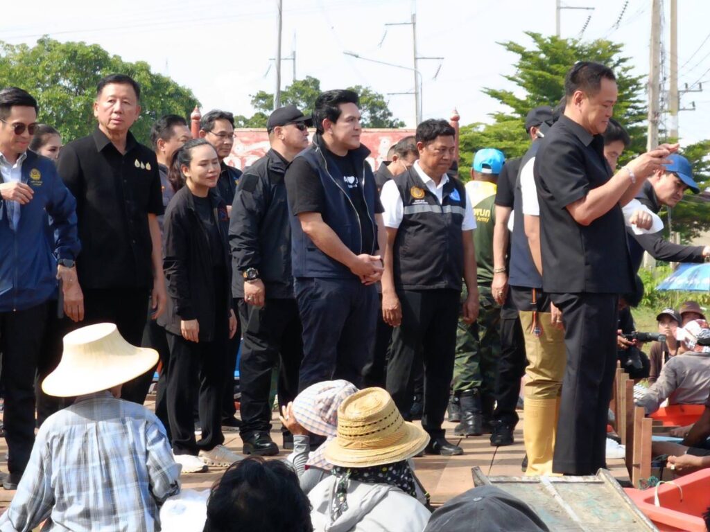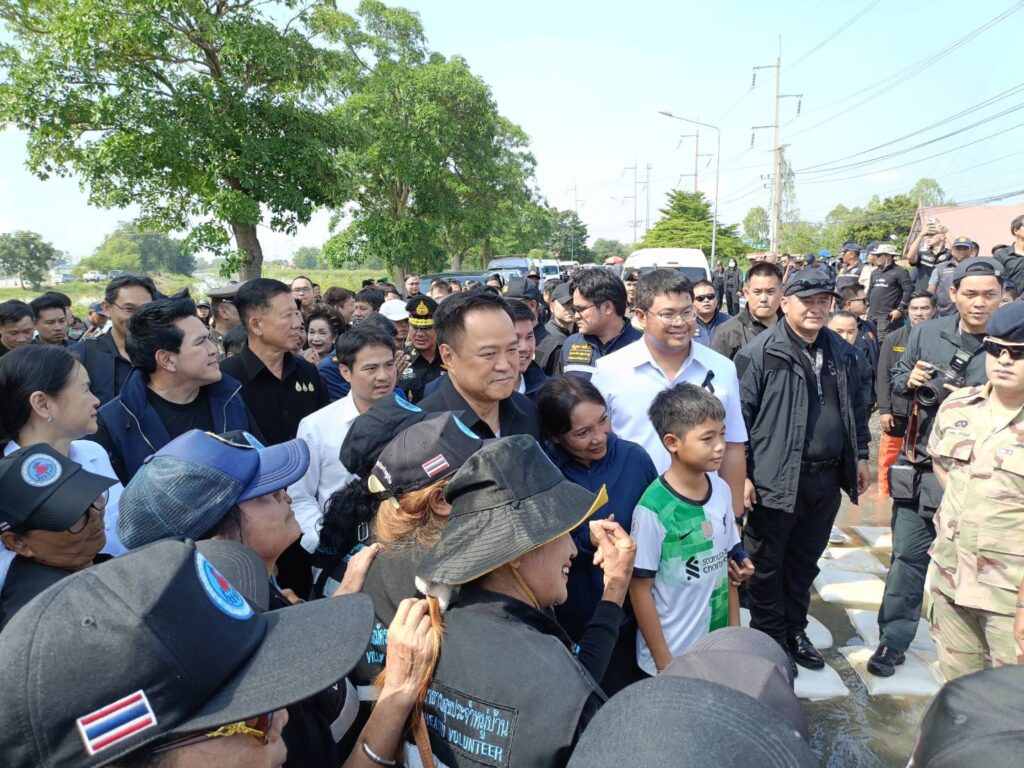 นายอนุทิน ชาญวีรกุล นายกรัฐมนตรีและรัฐมนตรีกระทรวงมหาดไทย พบปะและมอบถุงยังชีพแก่พี่น้องประชาชน ที่ประสบภัยและรับฟังปัญหา การบริหารจัดการน้ำ บริเวณวัดบันไดช้าง ตำบลหัวเวียง อำเภอเสนา จังหวัดพระนครศรีอยุธยา