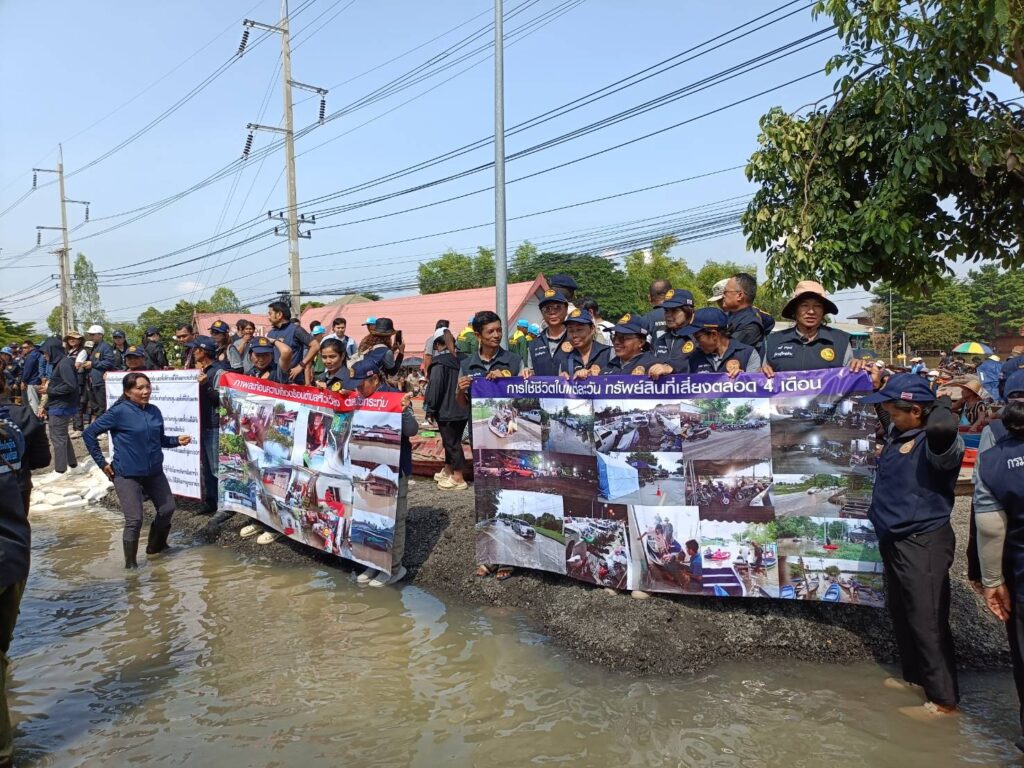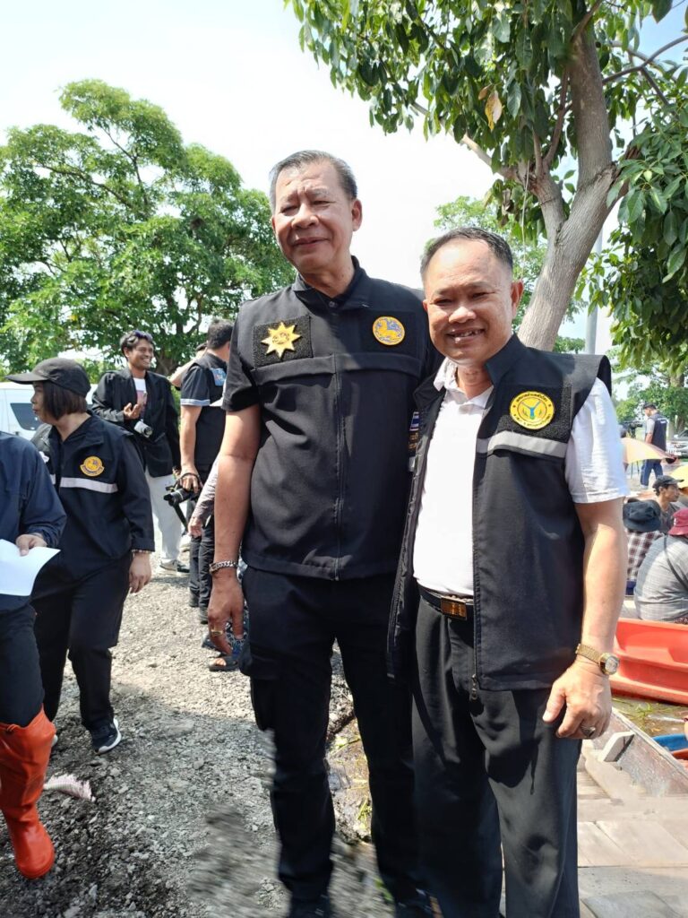 นายประพันธ์ ตรีบุบผา รองผู้ว่าราชการจังหวัดนครศรีอยุธยา ส.ส.ประดิษฐ์ สังขจาย เขต 5 นายเสรี งานวิริยะมงคล สมาชิกสภาเทศบาลหัวเวียง นายปัญจรุจน์ อิทธิดุสิตโรจน์ ผู้จัดการ การประปาส่วนภูมิภาค อำเภอเสนาเขต 2 /นายถาวร ศรีอรัญ ผู้อำนวยการ ศูนย์ข่าวหนังสือพิมพ์”ข้าแผ่นดินสยามฯ ประจำศูนย์ข่าว จังหวัดพระนครศรีอยุธยา / นายธนวัฒน์ ศรีพระธาตุตระกูล รองผู้อำนวยการศูนย์ข่าว ร่วมกับคณะทำงานและผู้นำชุมชน เทศบาลตำบลหัวเวียง อำเภอเสนา จังหวัดพระนครศรีอยุธยา และชาวบ้านจำนวนหลายร้อยคน รอต้อนรับ นายอนุทิน ชาญวีรกุล นายกรัฐมนตรี และรัฐมนตรีกระทรวงมหาดไทย เพื่อรอรับถุงยังชีพจากนายกรัฐมนตรี โดยการนั่งเรือมารอรับบริเวณหน้าวัดบันไดช้าง ที่ถูกน้ำท่วมขังมา 4-5 เดือน