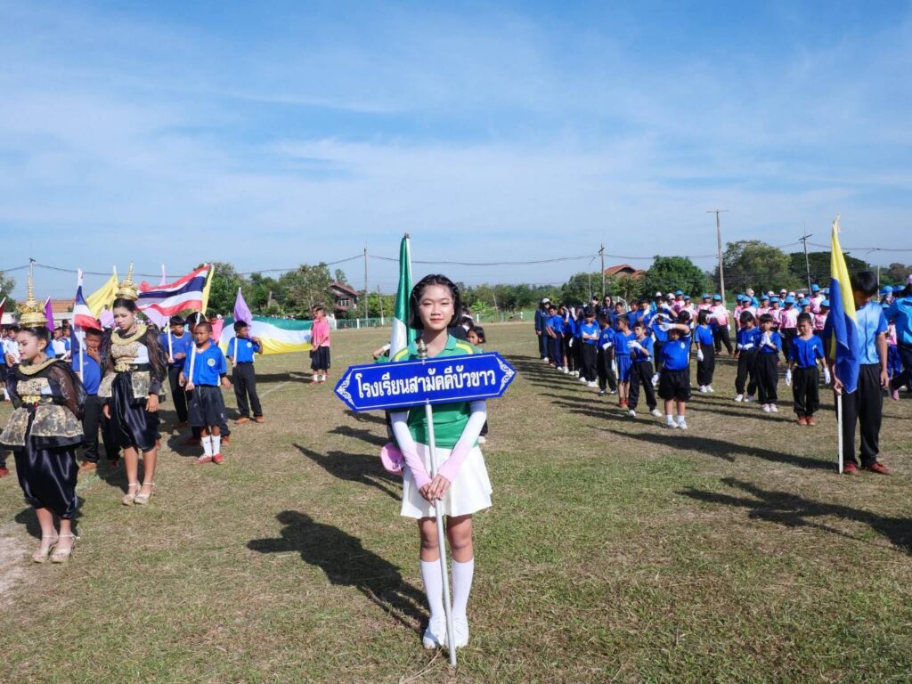 วันที่ 24 – 28 พฤศจิกายน พ.ศ. 2568 โรงเรียนสามัคคีบัวขาว นำโดยนางสาวจันทร์เพ็ญ วรรณขาว ผู้อำนวยการโรงเรียน พร้อมคณะครูได้นำนักเรียนเข้าร่วมการแข่งขันกีฬานักเรียนต้านภัยยาเสพติด “เมืองนารายณ์เกมส์ 68” ระดับกลุ่มโรงเรียนเมืองกุฉินารายณ์ ณ สนามกีฬาโรงเรียนหนองหูลิงเจริญเวทย์ ผู้ถือป้ายโรงเรียน เด็กหญิง ศิรินภา ปะตาทายัง นักเรียนชั้นประถมศึกษา ปีที่ 6
