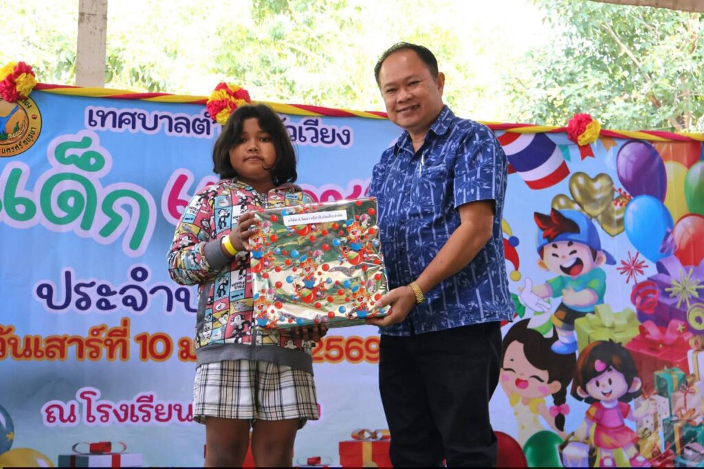 นายเสรี งานพิริยมงคล สมาชิกสภาเทศบาลตำบลหัวเวียง และผู้นำชุมชน ร่วมมอบของขวัญเนื่องในวันเด็กแห่งชาติ ให้แก่น้องๆ นักเรียนโรงเรียนหัวเวียง ตำบลหัวเวียง อำเภอพระนครศรีอยุธยา จังหวัดพระนครศรีอยุธยา เพื่อสร้างรอยยิ้ม ความสุข และเป็นกำลังใจให้เด็กและเยาวชนได้เติบโตเป็นคนดีของสังคม พร้อมส่งเสริมการศึกษาและพัฒนาศักยภาพของเยาวชนในพื้นที่อย่างยั่งยืน
