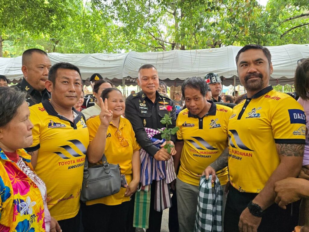 ขอแม่ทัพภาคที่ 2 ด้วยท่ามกลางชาวบ้านที่มารอต้อนรับหลายคนร่วมกันผูกผ้าขาวม้าตามประเพณีอีสานและมอบดอกกุหลาบอาหารพื้นบ้านยอดนิยม โดยแม่ทัพภาคที่ 2 ยังได้กล่าวขอบคุณพี่น้องประชาชนและพี่น้องข้าราชการทุกหมู่เหล่าในจังหวัดมุกดาหารที่มาให้การต้อนรับตนพร้อมคณะ