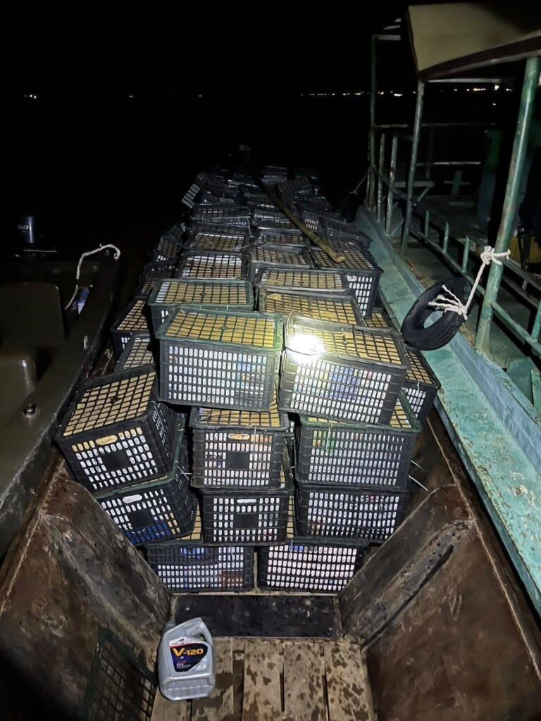ในเวลาต่อมา ชุดปฏิบัติการลาดตระเวนสามารถใช้กล้องตรวจการณ์กลางคืน (Night Vision) ตรวจพบเรือเหล็กติดเครื่องยนต์ มีบุคคลขับขี่ 1 คน พร้อมสิ่งของต้องสงสัยจำนวนมากบรรทุกใส่ลังพลาสติกอยู่ภายในเรือ กำลังแล่นเรือข้ามแม่น้ำโขงจากฝั่งแขวงสะหวันนะเขต สปป.ลาว เข้ามาที่ริมฝั่งจังหวัดมุกดาหาร