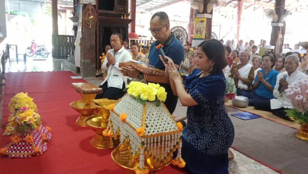เสร็จสิ้นขบวนแห่กฐิน เข้าร่วมประกอบพิธีจุดเทียนบูชาพระรัตนตรัย ถวายทอดกฐินสามัคคีเป็นที่เรียบร้อย