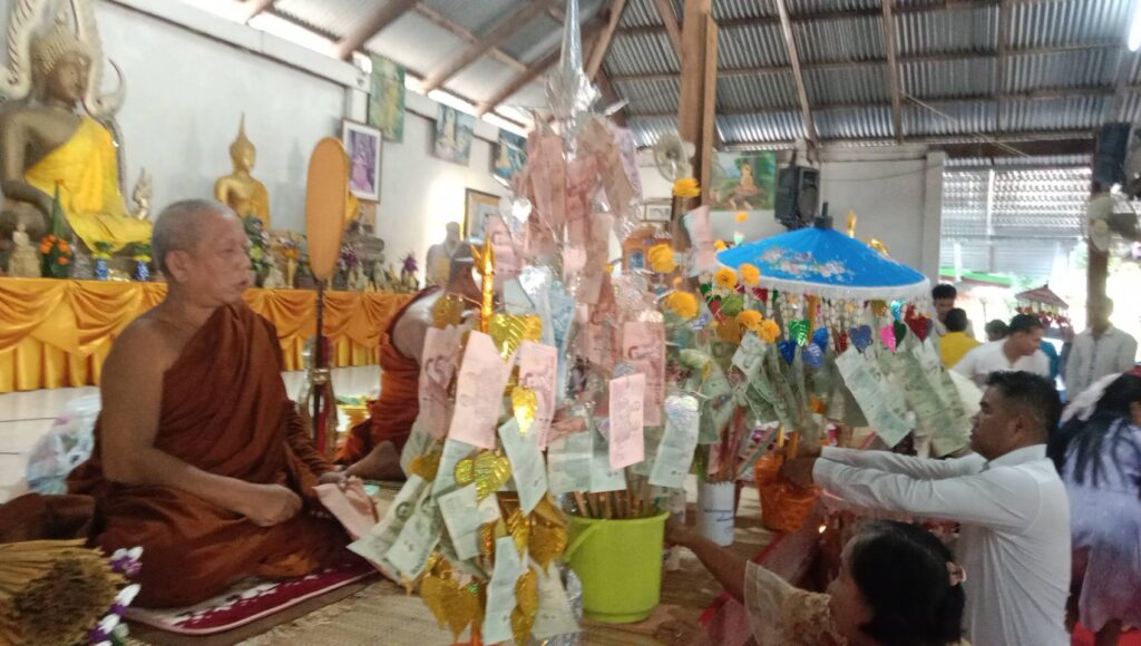 ผูกแขนรับฝัน เป็นอันเสร็จพิธี ยอดแจ้งจำนวนเงินกฐินสามัคคีในปีนี้ เป็นจำนวนเงินทั้งสิ้น 76,5693 บาท จึงได้เดินทางกลับ