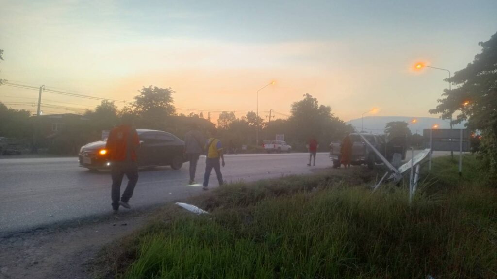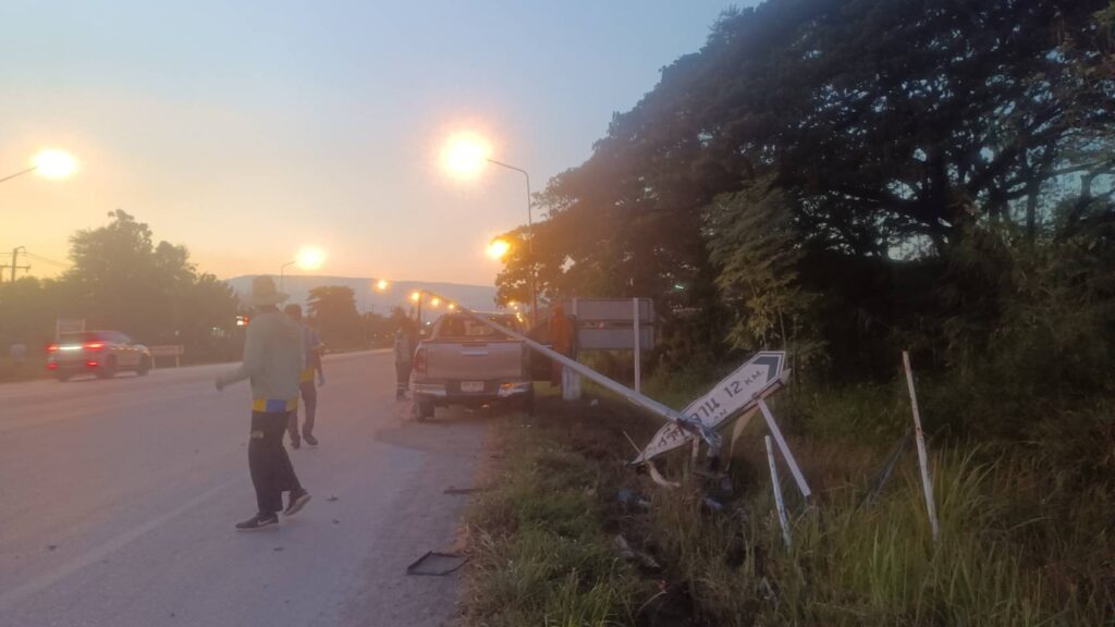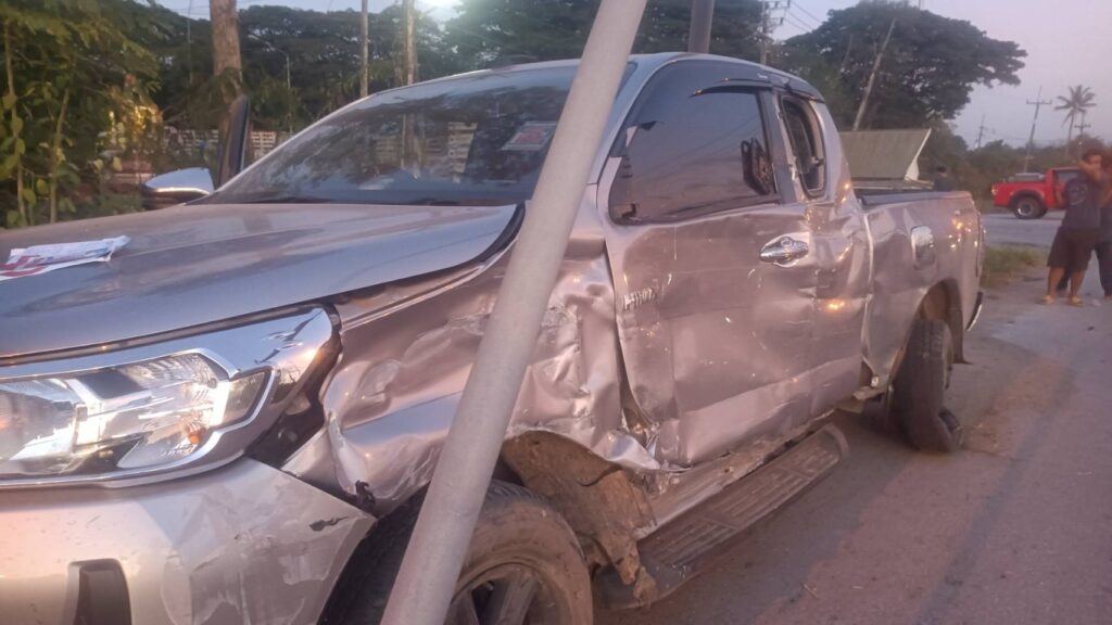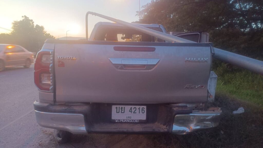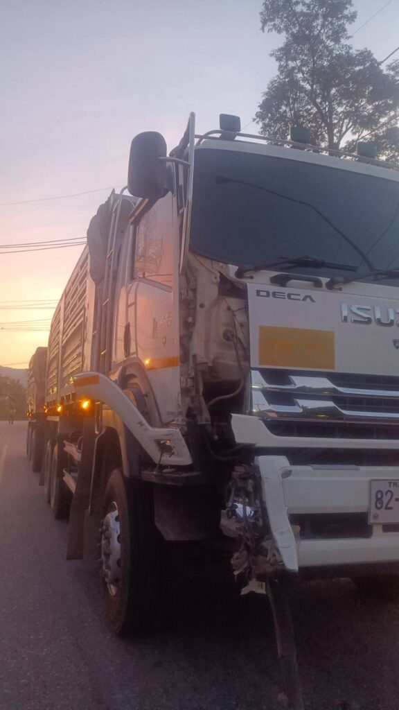 Today (December 1, 2024) at approximately 5:30 PM, an accident occurred involving a pickup truck with license plate BY 4216 Loei and a trailer truck with license plate 82-2180 Loei at the Wang Phai junction in Phanok Khao Subdistrict, Phu Kradueng District, Loei Province.