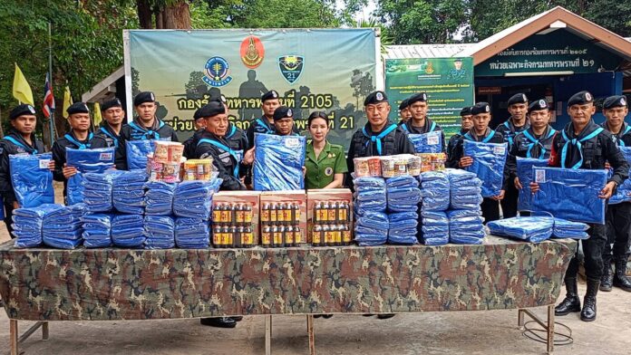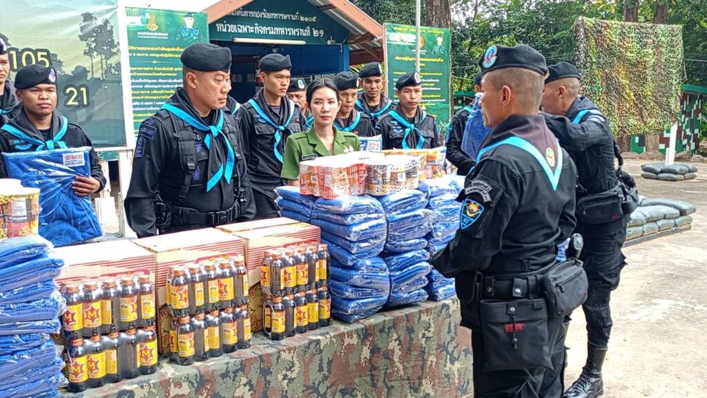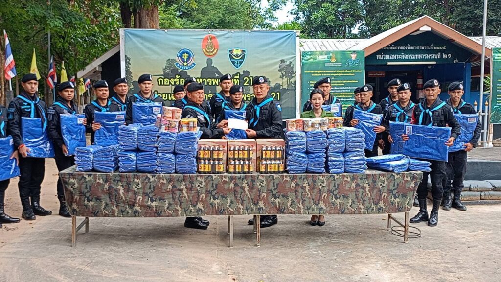 เมื่อวันที่ 7 พ.ย.67 ร้อย.ฉก.ทพ.2105 ฉก.ทพ.21 ให้การต้อนรับ พ.อ.อินทราวุธ ทองคำ ผบ.ฉก.ทพ.21 พร้อมด้วย คุณกนกรัตน์ ทองคำ ประธาน สม.ทบ. สาขา กรม ทพ.21 เนื่องในโอกาสเดินทางมาตรวจเยี่ยมหน่วย ทั้งนี้ได้แนะแนวทางในการปฏิบัติภารกิจของกำลังพล เน้นย้ำยึดถือนโยบายของ ผบช. อย่างเคร่งครัด พร้อมมอบเครื่องอุปโภค – บริโภค นอกจากนี้ยังได้มอบผ้าห่มกันหนาวให้กับกำลังพล เพื่อเป็นขวัญและกำลังใจในการปฏิบัติหน้าที่ตามแนวชายแดน เพื่อความผาสุข