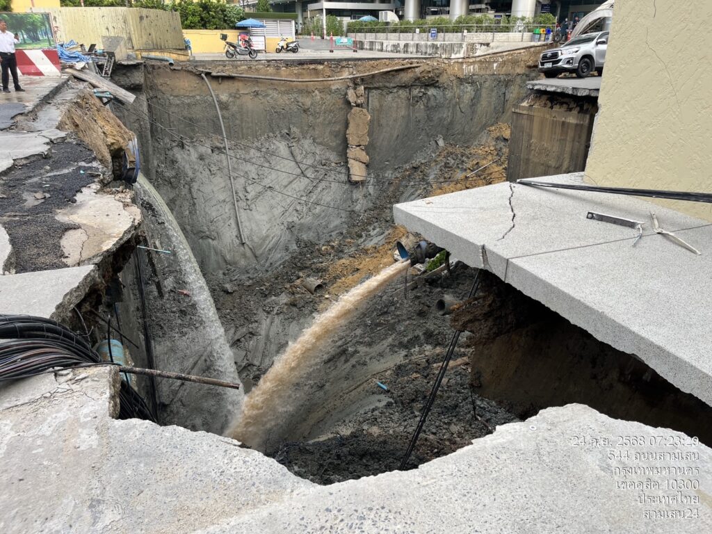 เวลา 07:50 น. เกิดเหตุถนนทรุดตัวความลึก50เมตร บริเวณหน้าวชิระพยาบาล ถนนสามเสน ทำให้ต้องปิดการจราจร แยกวชิระพยาบาล แยกซังฮี้ และบริเวณใกล้เคียงโดยรอบ เนื่องจากเหตุผิวการจราจรทรุดตัว อาจเป็นอันตรายต่อผู้สัญจรใกล้เคียงได้ สถานีวิทยุข่าวจราจรและความปลอดภัย สวพ. 91 รายงานเพิ่มเติมว่าปิดการจราจร ถนนขาวรถที่ลงจากสะพานกรุงธน ต้องตรงเข้าแยกสั่งฮี้อย่างเดียว หรือหลีกเลี่ยงสะพานกรุงธน รถติดมากจากเหตุถนนทรุด