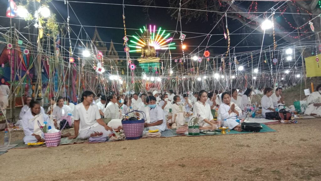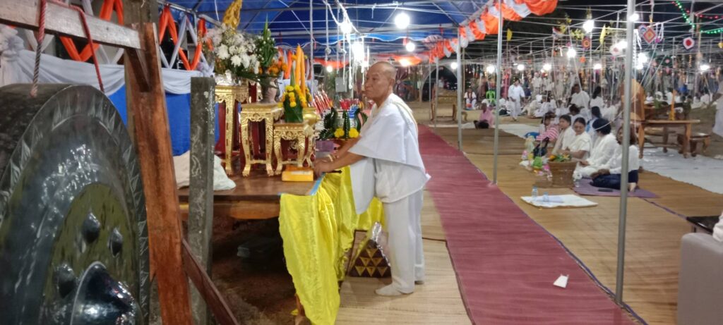 จุดเทียนชัยงานพุทธาภิเษกสมโภชพระประธานและพิธีบวงสรวงสวดมนต์ข้ามคืนเมื่อถึง เวลา 05.49.น วันที่ 12 มีนาคม 2566 แรม 6 ค่ำ