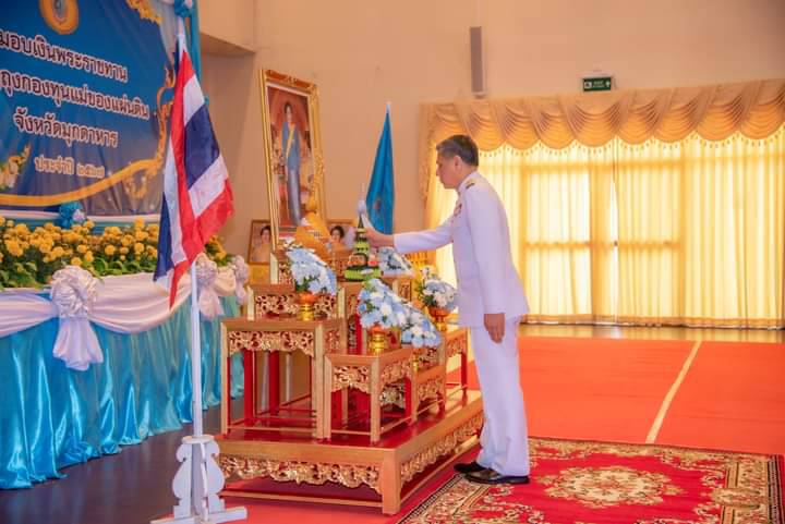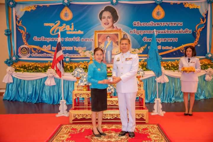 ผู้ว่าราชการจังหวัดมุกดาหาร เป็นประธานในพิธีมอบเงินพระราชทานขวัญถุงกองทุนแม่ของแผ่นดิน 2567 ให้แก่ตัวแทนหมู่บ้านที่ได้ขยายผลจัดตั้งเป็นหมู่บ้านกองทุนแม่ของแผ่นดิน ปี 2567 จำนวน 8 หมู่บ้าน โดยมี