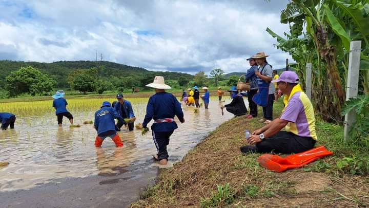 นายอำเภอคำชะอี ประธานเปิดกิจกรรมเอามื้อสามัคคี ทำความดีถวายเป็นพระราชกุศลตามโครงการเฉลิมพระเกียรติพระบาทสมเด็จพระเจ้าอยู่หัว เนื่องในโอกาสพระราชพิธีมหามงคลเฉลิมพระชนมพรรษา ๖ รอบ ๒๘ กรกฎาคม ๒๕๖๗ โดยผู้เข้าร่วมกิจกรรมทุกท่านร่วมกัน ดำนา และปลูกต้นไม้ ณ ศูนย์เรียนรู้ทฤษฎีใหม่รูปแบบโคก หนอง นา แปลงนางสาวนภาพร อาจวิชัย หมู่ที่ ๗ ตำบลคำซะอำ อำเภอคำขะอี จังหวัดมุกดาหาร