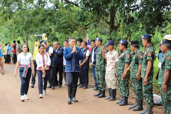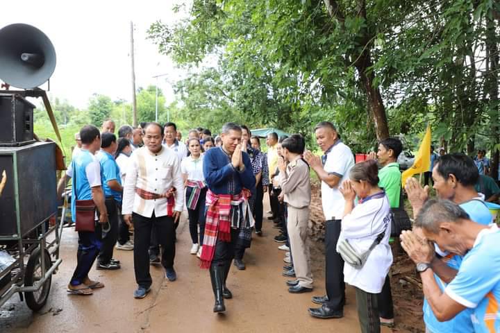นางอัญชลี กัลมาพิจิตร ประธานแม่บ้านมหาดไทยจังหวัดมุกดาหาร โยธาธิการและผังเมืองจังหวัดมุกดาหาร นายอำเภอดงหลวง ประชาสัมพันธ์จังหวัดมุกดาหาร พร้อมหน่วยงาน และประชาชนในพื้นที่