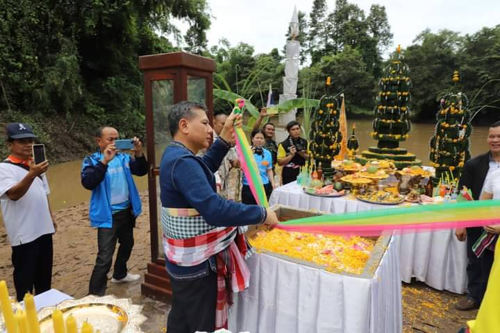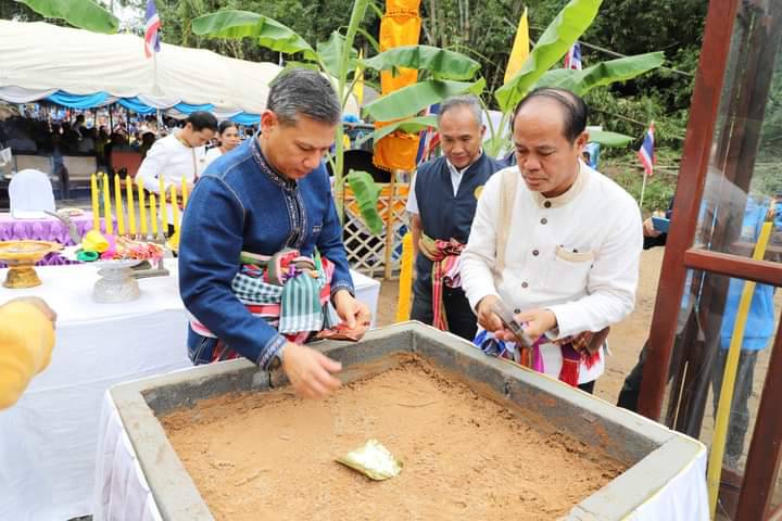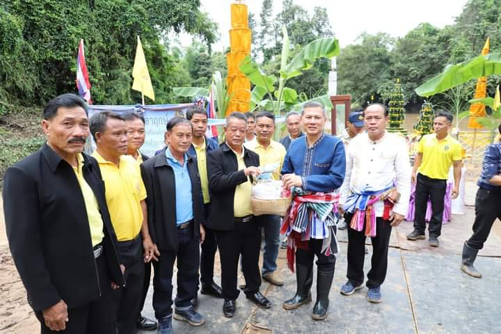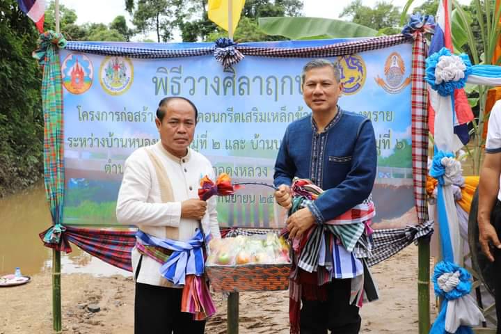 ผู้ว่าราชการจังหวัดมุกดาหารเป็นประธานในพิธีวางศิลาฤกษ์ก่อสร้างสะพานคอนกรีตเสริมเหล็กข้ามห้วยบางทราย โดยมี
