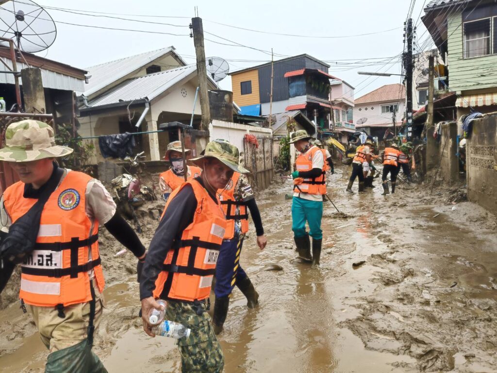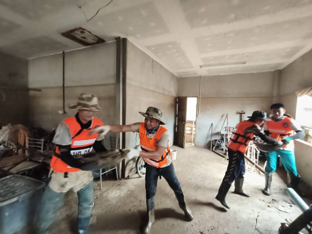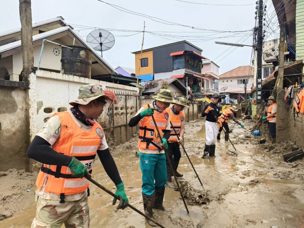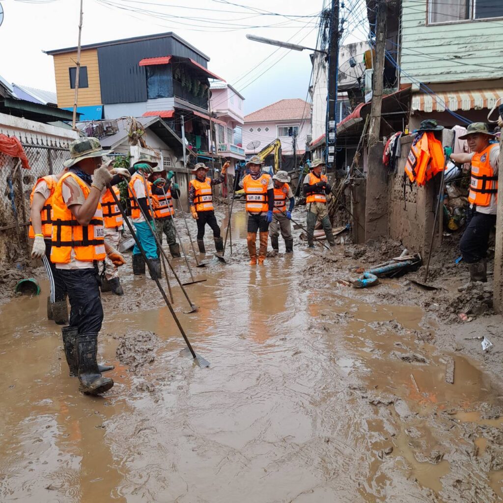โดย​ปฏิบัติภารกิจขุดดินโคลนออกจากพื้นที่บ้านเรือนประชาชนที่ได้รับผลกระทบ