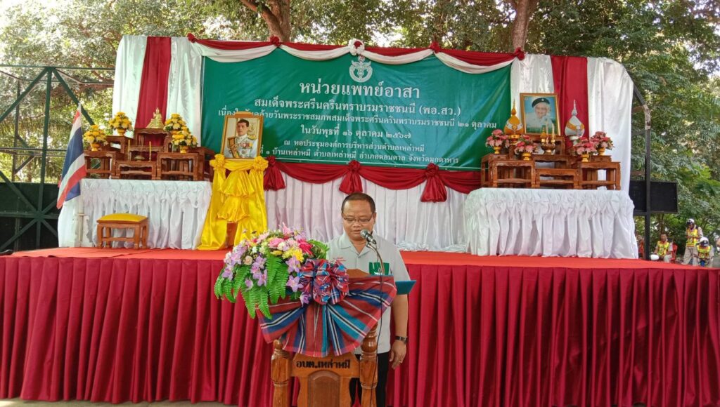 พระหฤทัยแน่วแน่ในการช่วยเหลือประชาชนให้พ้นทุกข์และมีความเป็นอยู่ที่ดีขึ้นก่อบังเกิดคุณประโยชน์ยิ่งใหญ่ไพศาลแก่ประเทศชาติทั้งด้านการศึกษาวรรณคดีการสาธารณสุขการสังคมสงเคราะห์การยกระดับคุณภาพชีวิตโดยเฉพาะอย่างยิ่งในชนบทที่ห่างไกลความเจริญด้วยสำนึกในพระมหากรุณาธิคุณเป็นลอนพ้นจังหวัดมุกดาหารจัดหน่วยแพทย์เคลื่อนที่ พอ.สว