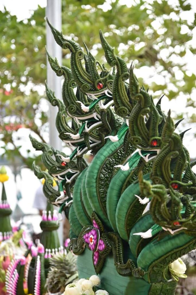 หลังจากพิธีบวงสรวงเสร็จสิ้น ได้มีการนำเครื่องบวงสรวงถวายใส่กระทงขนาดใหญ่เพื่อลอยลงแม่น้ำโขงเพื่อเป็นการบูชาองค์ปู่พญาอนันตนาคราช เพื่อความเป็นสิริมงคล เป็นอันเสร็จพิธี