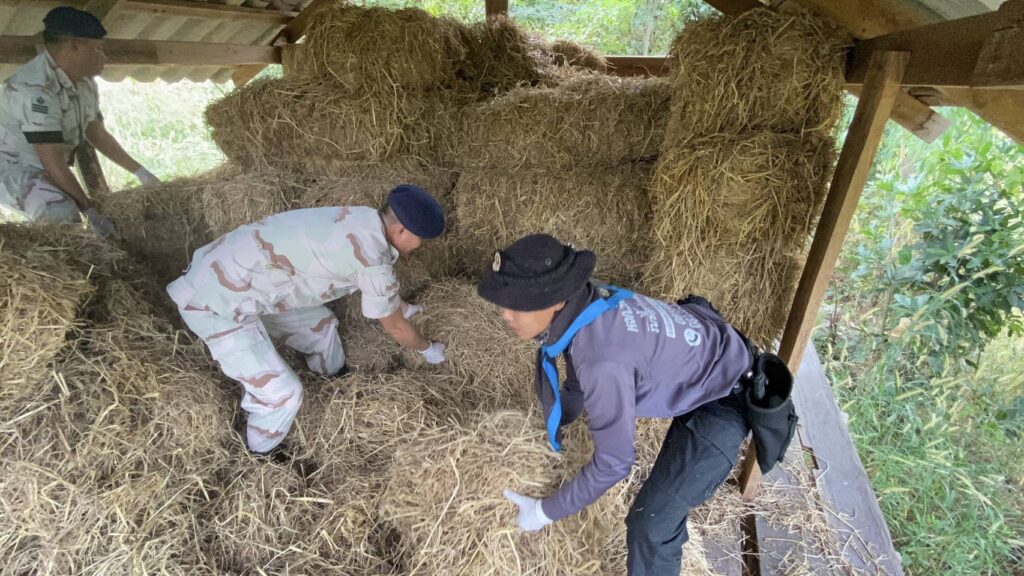 ผู้ต้องสงสัยที่คาดว่าจะนำยาออกจากพื้นที่เกิดเหตุ จนกระทั่งเวลา 08.00 ของวันที่ 19 พ.ย. 67 ไม่มีผู้ต้องสงสัยเข้ามาในพื้นที่เกิดเหตุ ชุดปฏิบัติการร่วมฯ จึงได้ร่วมกันทำการตรวจยึดและนำของกลางมายัง ทก.ร้อย.ฉก.ทพ.2105 ฉก.ทพ.21 เพื่อทำการตรวจ