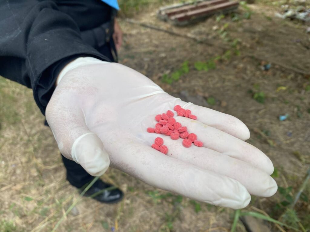 ยาเสพติดให้โทษประเภท 1 ยาบ้า หรือเมทแอมเฟตามีนชนิดเม็ดสีแดง ลักษณะกลมแบน ด้านหนึ่งปรากฏตัวอักษรภาษาอังกฤษ WY อีกด้านหนึ่งผิวเรียบ จำนวน