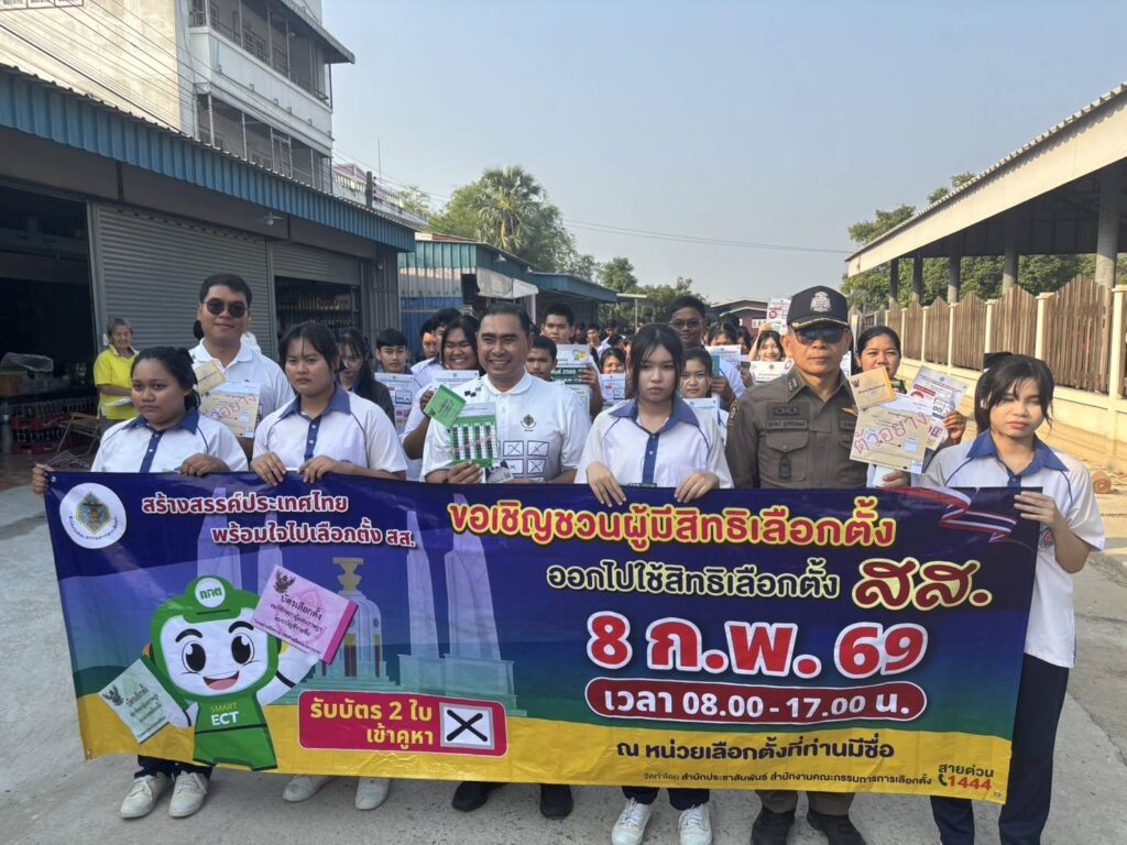 ในวันอาทิตย์ที่ 8 กุมภาพันธ์ 2569 ตั้งแต่เวลา 08.00 – 17.00 น. โดยเน้นย้ำให้เตรียมความพร้อม ” ณ หน่วยเลือกตั้งที่มีชื่อ เพื่อร่วมกันขับเคลื่อนประชาธิปไตยของประเทศไทยให้ก้าวหน้า